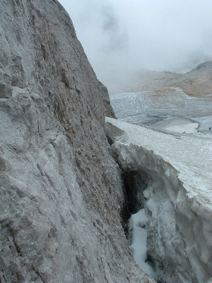 schwierigste Stelle erwies sich die Randkluft des Gletschers. Es