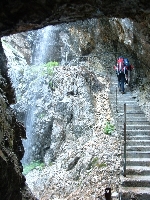 über Felsblöcke und durch Höhlen abwärts. Etwa. 3 h später