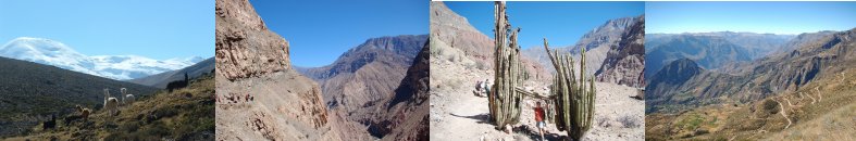 Auf dem Flughafen in Frankfurt trafen wir Iris und Petra kennen aus unserer Reisegruppe. Da wir früh am Morgen in Santiago de Chile ankamen und wir erst am Abend nach Lima weiterfliegen konnten, hatten wir den ganzen Tag Zeit uns in der Stadt umzuschauen. In Lima traf wir auf Paul und Beate, die schon ein paar Tage vor uns in Peru eingetroffen waren. Gleichzeitig lernten wir unserer Reiseleiterin Tanja kennen. Unsere Reisgruppe war nun komplett. Nach einer Übernachtung in Lima und einem kurzen Stadtrundgang, begann die Reise im Kleinbus auf der Panamerikana über Ica, Nasca, Corire nach Arequipa. Ica: Wenige (6 km südwestlich )Kilometer von Ica entfernt liegt die Oase Huacacina. Hier erwartete uns Jamo mit zwei Buggys mit denen wir eine Ausflug ans Meer unternahmen. Nach einer Übernachtung im Zelt kehrten wir am Morgen zur Oase zurück. Nasca: Nasca ist bekannt durch seltsame Linien und Zeichnungen im steinigen Wüstenboden. Der genaue Ursprung ist bis heute nicht geklärt und sie sind auch nur aus der Vogelperspektive zu sehen. Corire: In Corire übernachteten wir bei Cäsar, der in größerem Maßstab Landwirtschaft betreibt und über eine eigene Piscobrennerei verfügt. Natürlich konnten wir auch mal den Pisco verkosten. In Toro Muerto besichtigten wir in Felsbrocken gemeißelte Petroglyphen, die der Huari- Kultur zugerechnet werden. Corire war dann auch der Ausgangspunkt für unseren Abstecher in den Cotahuasi Canyon. Cotahusi Canyon Der eindrucksvolle Cotahuasi Canyon, etwa 200 km von Arequipa entfernt, gilt mit seinen teilweise mehr als 3.300 m Tiefe als der tiefste Canyon der Welt. Damit ist er beinahe doppelt so tief wie der Grand Canyon. Der Besuch des Canyons war zugleich die erste Trekking- Einlage und der erste Kontakt mit ungewohnter Höhe. Ab Chuquibamba ging es auf einer ungeteerten Strasse über einen 4.650 m hohen Pass vorbei am schneebedeckten Coropuna, nach Cotahuasi ( 2.650 m) Nach einer Übernachtung im Ort fuhren wir am nächsten Morgen mit dem Kleinbus zu einer Packstation wo, unser Ausrüstung auf Esel und Maultiere verladen wurde. Wir selbst hatten nur unser Tagesgepäck zu tragen. Mittagessen gab es bei Rusola, die mit ihrem Mann in völliger Abgeschiedenheit von dem lebt, was der karge Canyon hergibt. Am späten Nachmittag erreichten wir unser Camp. Nachdem wir unser Zelte aufgebaut hatten, führte uns Marcio zu einer warmen Quelle, in der wir uns von der Wanderung erholen konnten. Am nächsten Morgen ging es noch etwas tiefer in den Canyon hinein. Vorbei an Kakteenwäldern über abenteuerliche Brücken und präinka Siedlungen erreichten wir gegen Mittag das Dorf Quechualla. Nach dem Mittagessen bei dem vielleicht zukünftigen Bürgermeister ging es wieder zurück zum Camp und zu der warmen Quelle :-). Marcio, unser lokaler Guide, wohnt selbst in Cotahuasi und bemüht sich den Canyon touristisch zu erschließen und weltweit bekannt zu machen. Nach der zweiten Nacht in unserem Camp marschierten wir am Morgen nach Cotahuasi zurück. Dabei machten wir noch einen Abstecher zu dem mächtigen Sipia- Wasserfall. Wir übernachteten noch einmal in Ort Cotahuasi und fuhren am nächsten Morgen über Chuquibamba und Corire nach Arequipa. Arequipa und Cusco Arequipa: Wegen der aus weißem Tuffstein erbauten Kirchen und Paläste wird sie auch die weiße Stadt genannt.Ein eindruckvolles Erlebnis für uns war der Besuch des viventura Sozialprojektes am Stadtrand. Mit Hilfe von Spendengeldern wurde hier eine Schule gebaut, die den Kindern des Vorortes Bildung in angemessener Umgebung ermöglicht. Viele interessante Fotomotive bot uns das Kloster Stanta Catalina. Hinter hohen Mauern findet man hier praktisch eine Stadt in der Stadt vor. Die Wände der verschiedenen Klosterbereiche sind mit Pastellfarben gestrichen. Durchgänge und Fenstersimse sind mit bunten Blumen dekoriert. Am Abend suchten wir uns ein nettes Restaurant. Wir erlebten Nachtleben europäischen Stils. Nach einigen Pisco Sour ließen wir uns von einem der vielen kleinen Taxis ins Hotel zurückfahren. Der Aufenthalt in Arequipa kam uns zu kurz vor. Nach der zweiten Übernachtung flogen wir früh am Morgen weiter nach Cusco. Cusco: